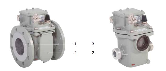 殼體是由耐氣候變化的鑄鋁合金制成,表層已涂色. 依照結(jié)構(gòu)設(shè)計形式可分為法蘭盤(圖3中1)連接或螺紋連接(圖3中2). 對殼體的變型品種選項將在下文第5點(單浮子瓦斯繼電器)和第7點( 雙浮子瓦斯繼電器)中加以說明. 其他選項歡迎垂詢.